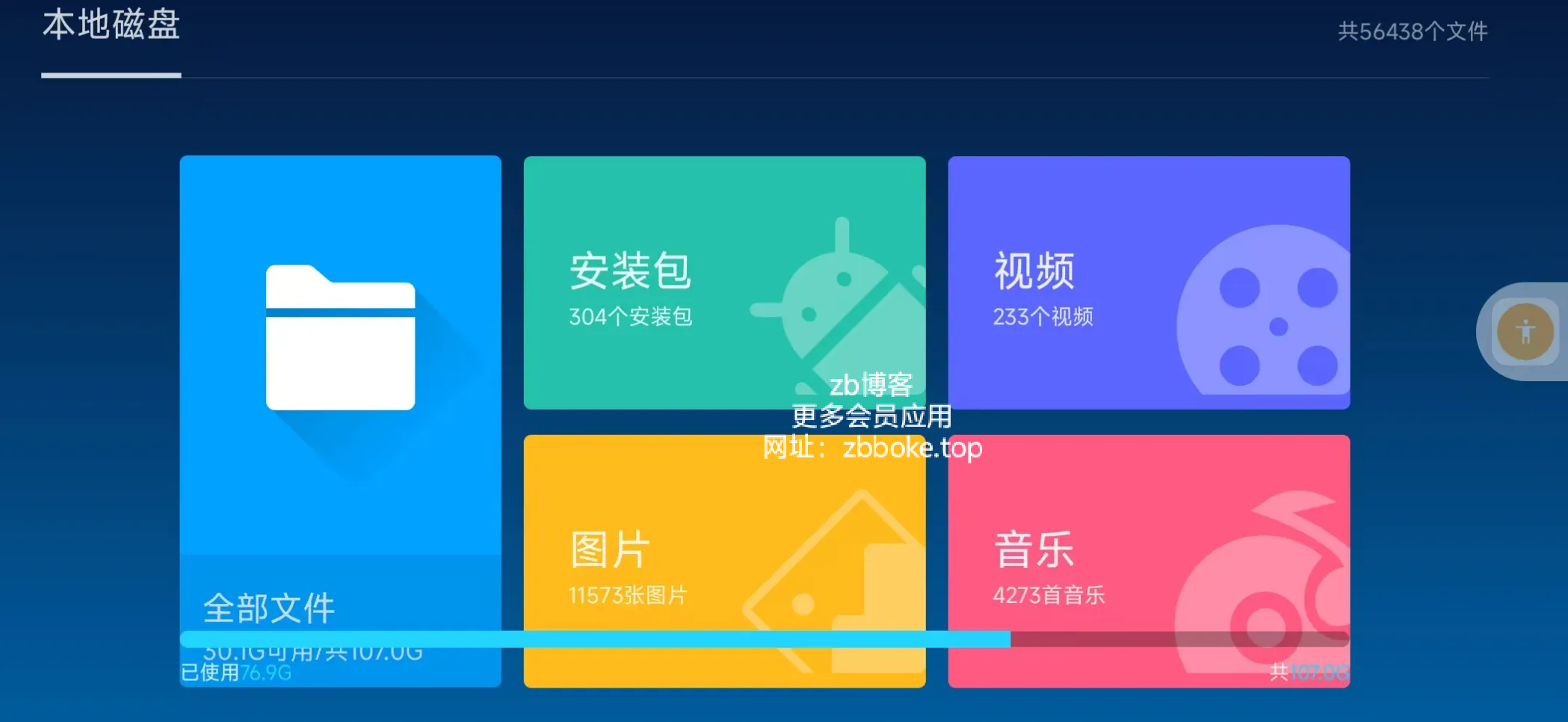 支持低版本盒子,支持磁盘管理功能,自动扫描本地和外部存储设备中的文件,安装包,音视频及图片文件。