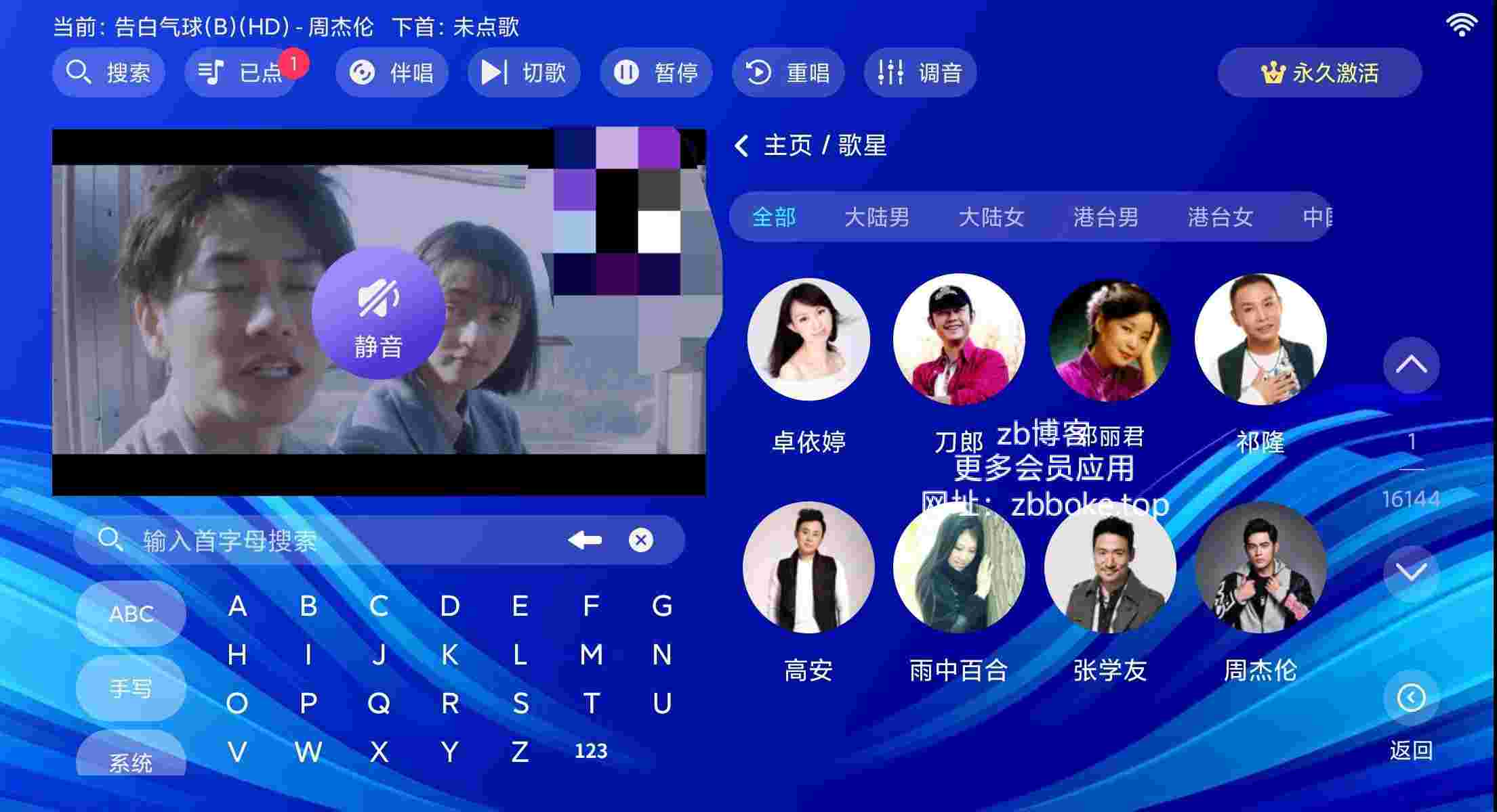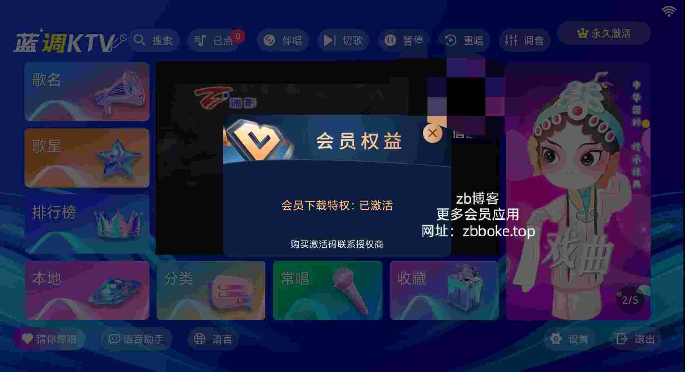 已解锁VIP会员特权,所有付费歌曲无限制点唱,永久激活,手机点歌K歌。