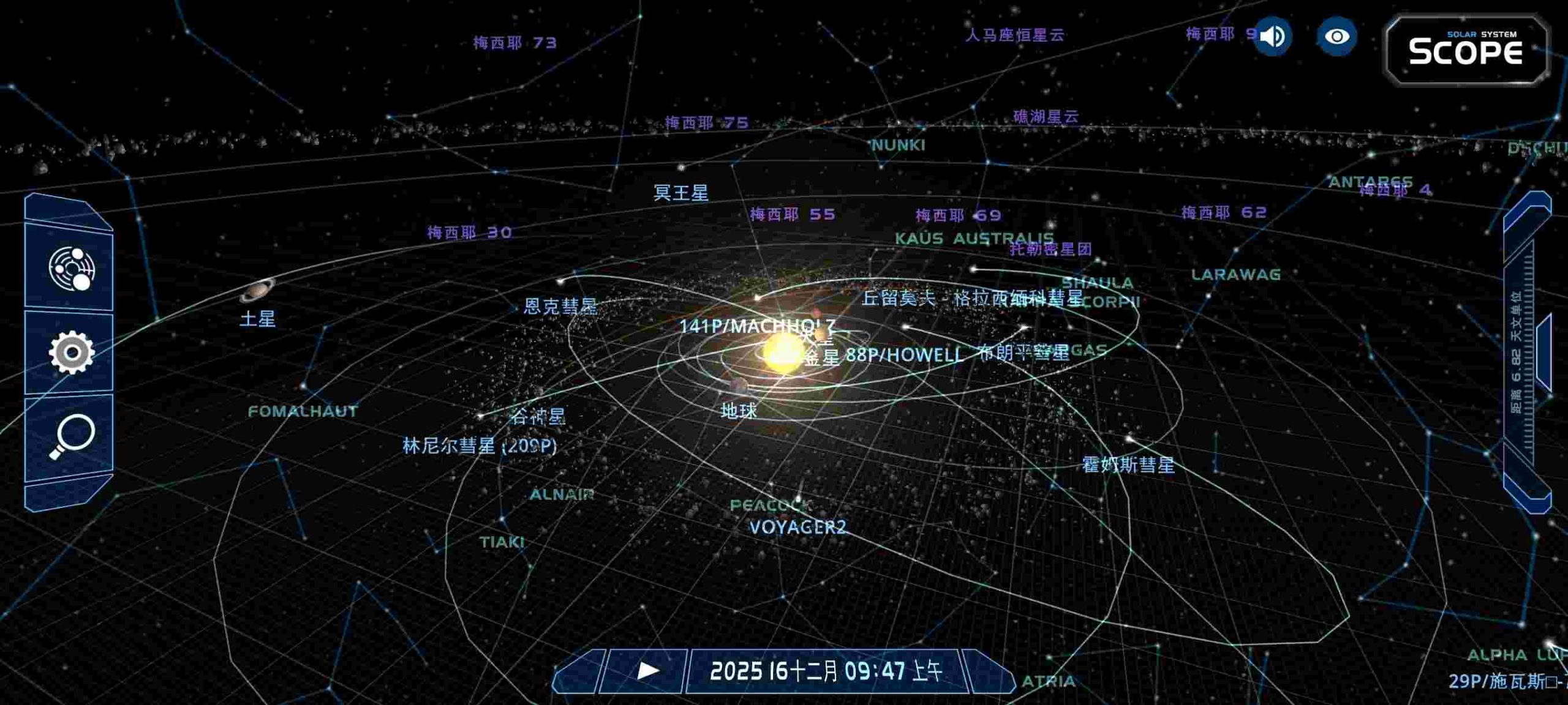 一款可以在手机上实时查看太阳系以及夜空的应用。用户打开后可以看到太阳、行星、卫星、彗星等天体在三维空间中的位置,并且可以随时改变观察角度和时间。该软件最早在 2010 年面世,随后被天文爱好者、学生和教师广泛使用,成为学习和探索宇宙的常用工具。