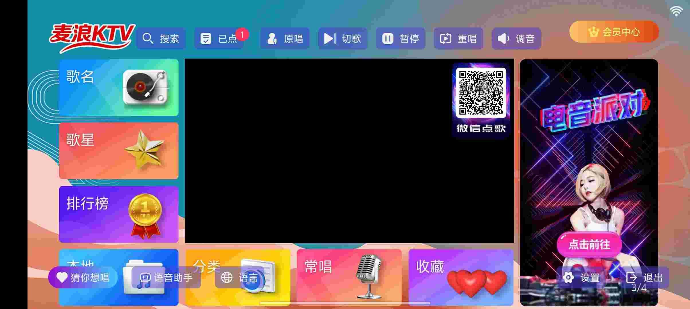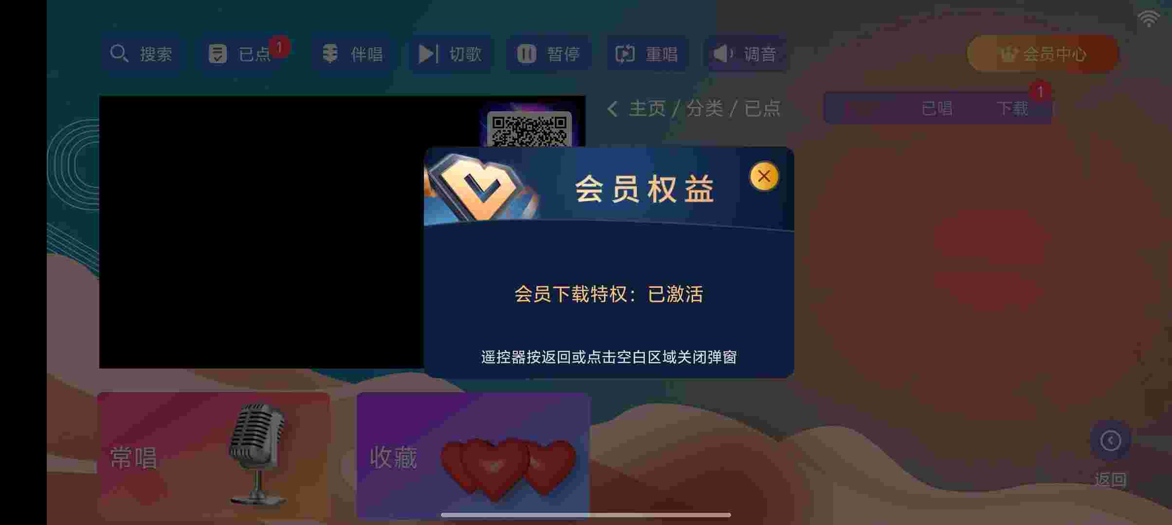 已解锁会员特权,海量流行经典歌曲无限点唱,超清MV音乐库,支持手机点歌。