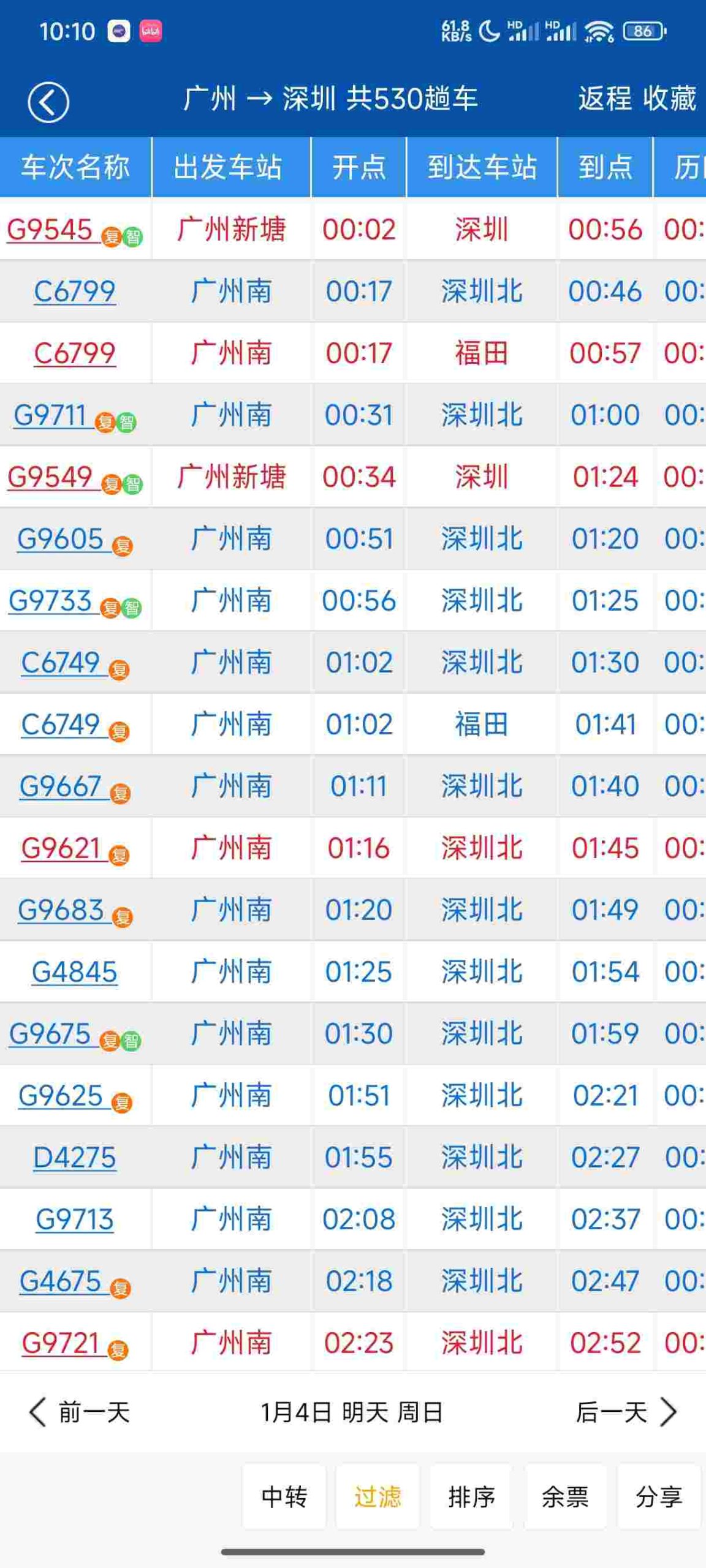 ✅ 智能提醒:列车停运、施工、临时调整及时通知;界面按颜色区分车次状态