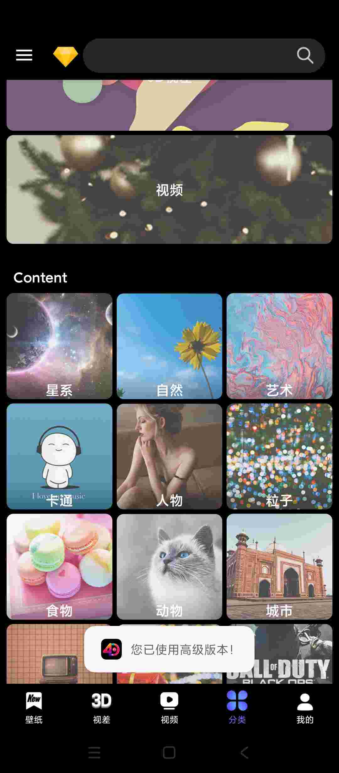 已解锁VIP会员,海量手机3D4D壁纸,已去除站外引流弹窗,众多分类选择,免登陆。