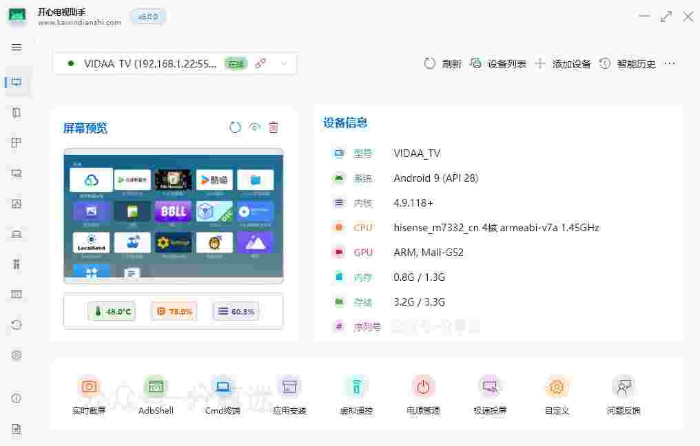 1. 图形化操作,小白也能轻松管理智能电视、电视盒子、投影仪等安卓设备;