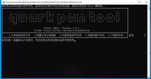 1.Windows上首次运行会比较缓慢,请注意底部任务栏,程序会自动打开一个浏览器,让你登录夸克网盘,登录完成后,请不要手动关闭浏览器,回到软件界面按Enter键,浏览器会自动关闭并保存你的登录信息,下次运行就不需要登录了。(如果是Linux环境下,请自行在网页获取Cookie后填入config/cookies.txt文件使用)。