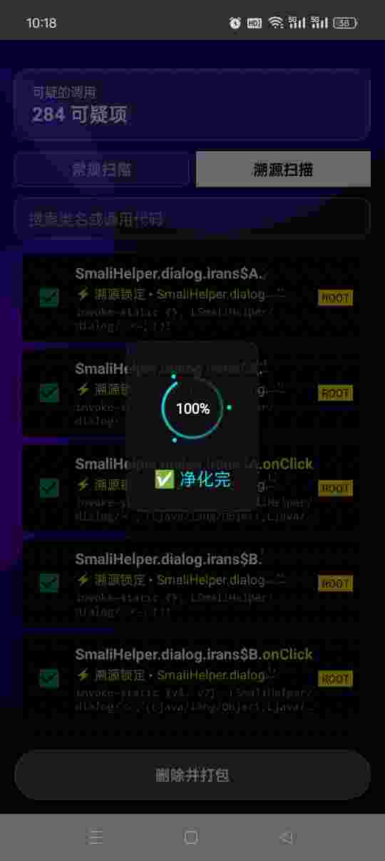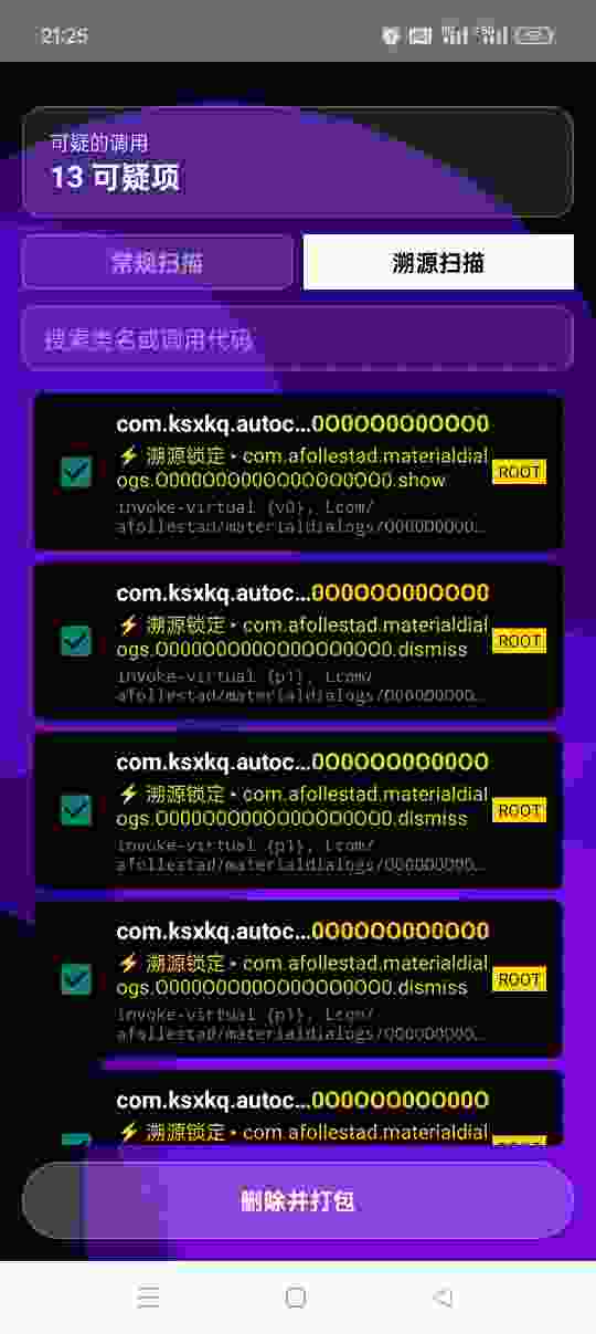3:长按顶部磨砂可疑区域,展示扫描到的所有结果 再次长按 隐藏结果 (支持长按溯源扫描进行全选)