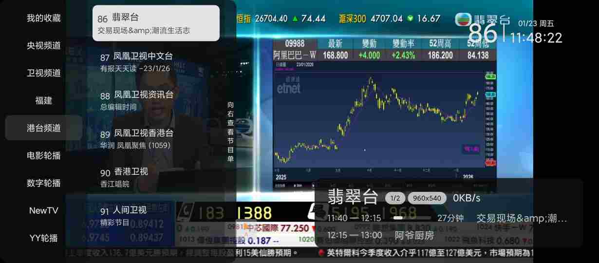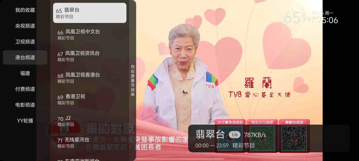 内置489+电视频道,可自行更换直播源,可看翡翠台,海量频道,如果播放不了就把混合模式打开,用官方线路。