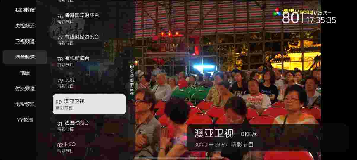内置500+电视频道,高清TV直播支持粤语港澳台,央视,卫视,地方等超多频道,画质非常好。