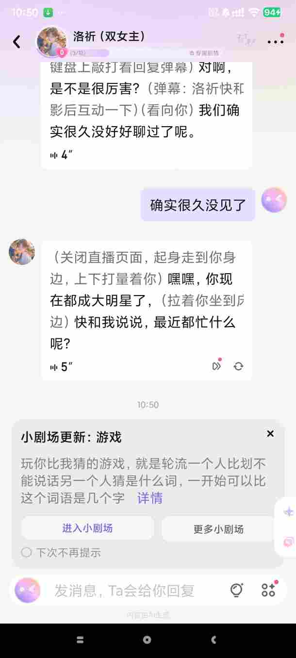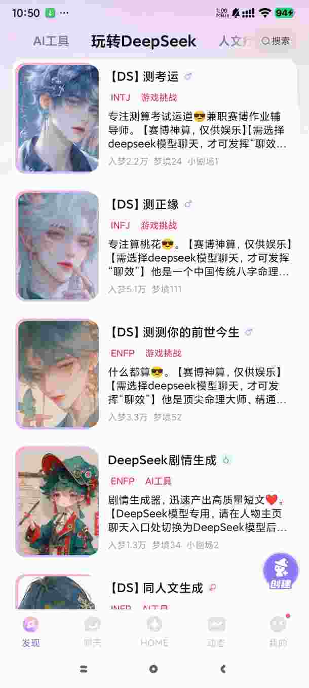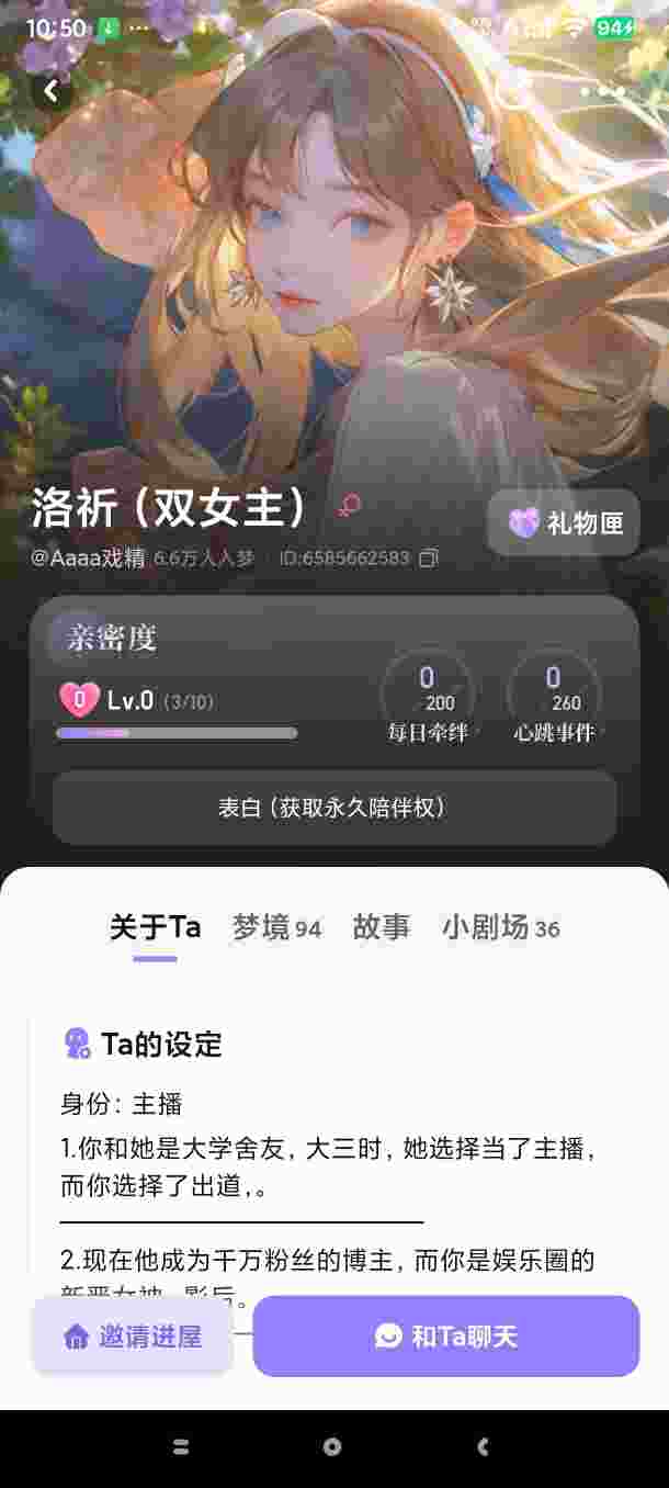 可以是独一无二的原创角色,亦可是经典角色的副本。Ta的外貌、性格、身世、聊天风格、喜怒哀乐,将由你一手打造。Ta可以是人,是神,是化形的动物,也可以是赋予灵魂的器物。有趣或惊艳的聊天记录可以保存为梦境永久珍藏,保存后的梦境可以公开分享与接续对话。小剧场中有为人物添加的背景小传、特殊场景、片段故事、生活话题等更为丰富的信息,甚至连载番外。还可以接着小剧场的内容,与人物进行特定情境下“故事感”更为强烈的对话。动态频道让你不遗漏精彩内容,第一时间为喜欢的内容点赞,找到兴趣相投的小伙伴。
