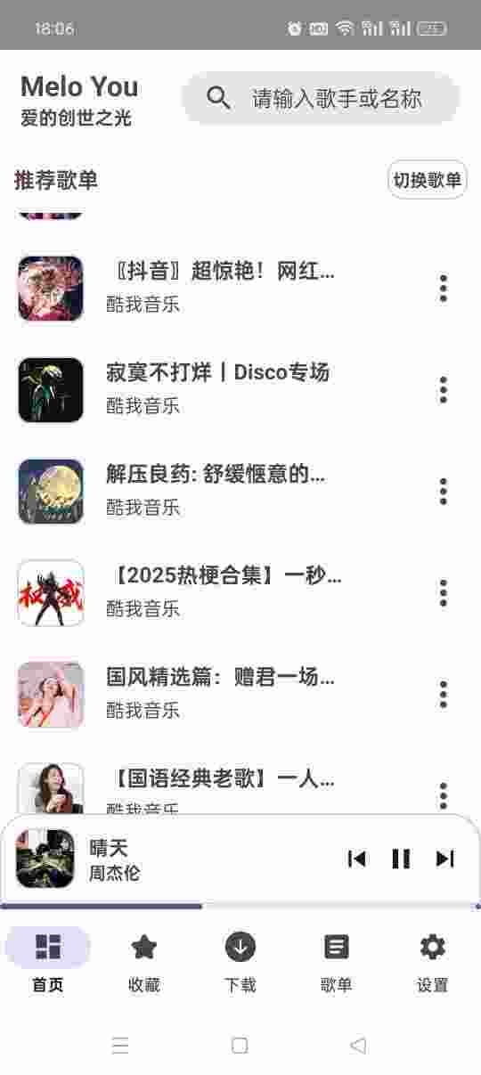 MeloYou是一款免费、无广告、无需会员的音乐播放软件,是纯净免费的全风格音乐平台,内置完整音源体系,聚合多平台热门曲目,涵盖流行、经典、独立等多种风格,为用户提供纯粹的音乐播放下载等体验。