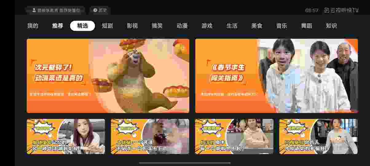 云视听快TV是一款优质且功能强大的视频影视播放软件,它也被叫做云视听快TV、电视快手app、快手app电视版。这里有海量高清小视频、自制小短剧、搞笑热门视频、游戏直播等,各种精彩让人眼花缭乱。电视快手app的主操作界面十分有特色,它依旧保留了快手简洁的设计风格,内容更多是以横向的方式展示,这更加符合电视用户的使用习惯。在板块布局上非常精简,详细的版块分类方便用户找到自己需要喜欢的内容。操作方法也很简单,只需要遥控器即可。