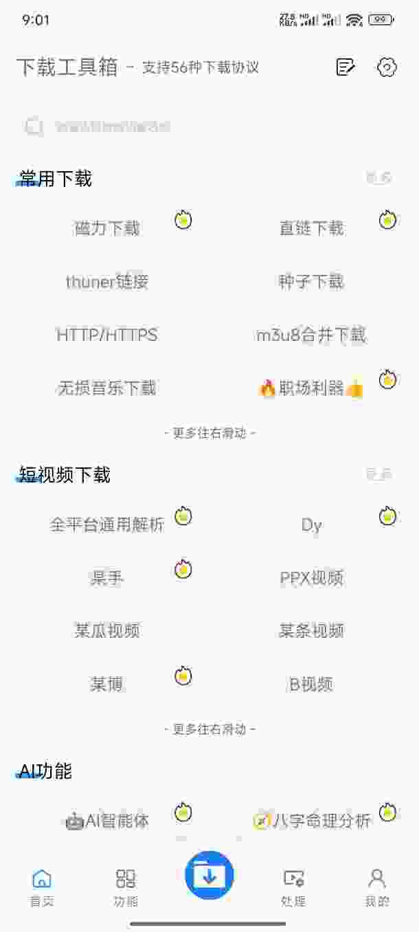 本软件内置56种下载协议,支持磁力、直连、种子、无损音乐、蓝奏云等常见下载,支持抖音、快手、西瓜、今日头条、B站等主流平台短视频下载,满足您的下载资源需求。传输过程采用超级先进的加密技术,无需担心文件丢失或隐私泄露。