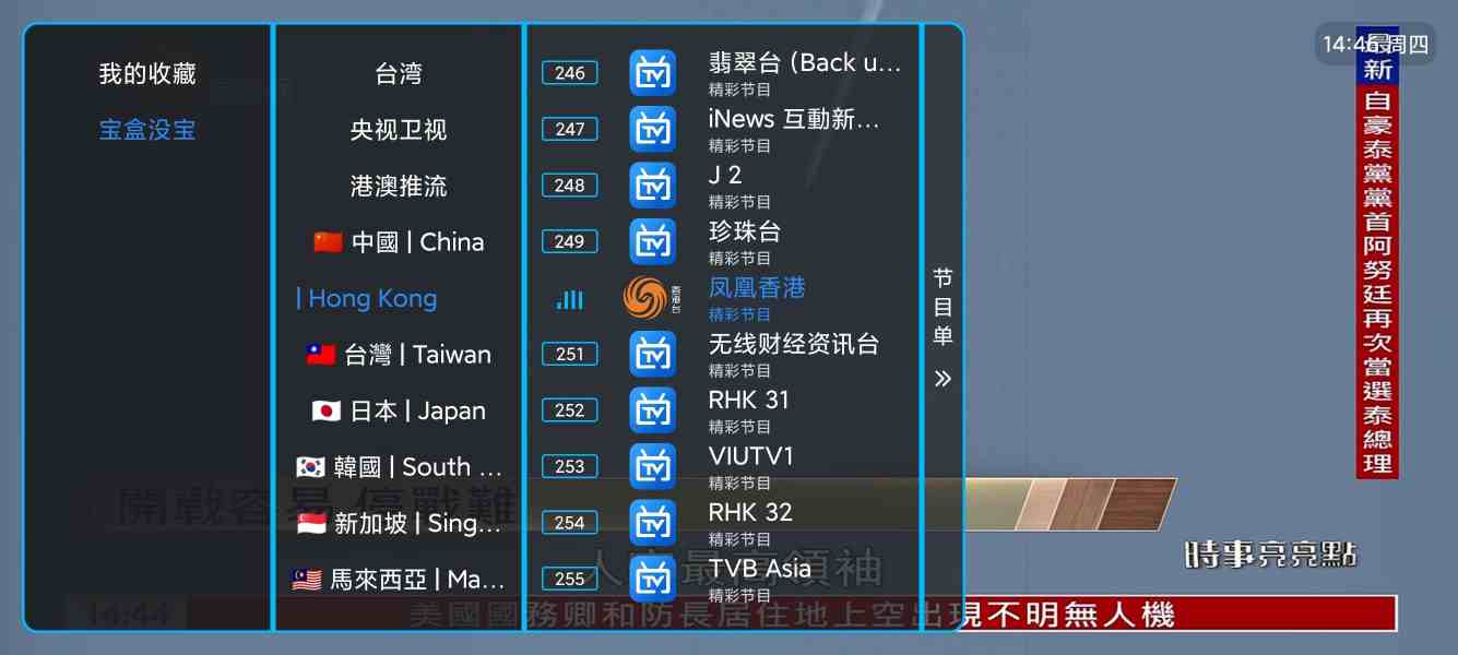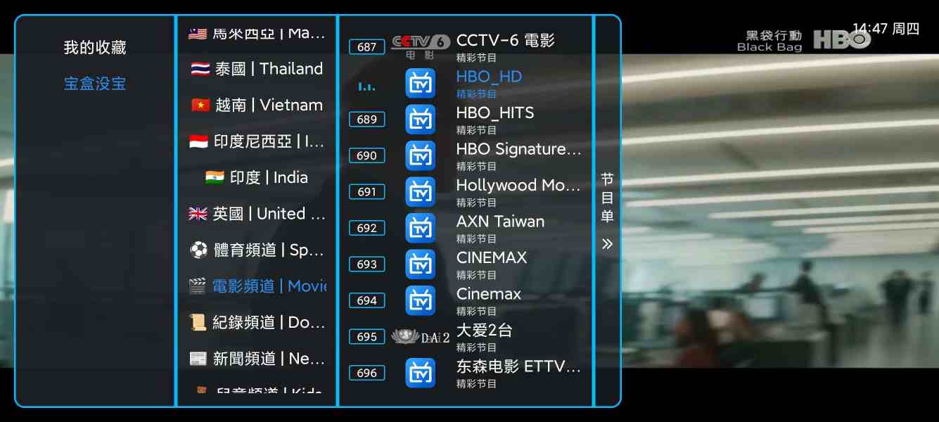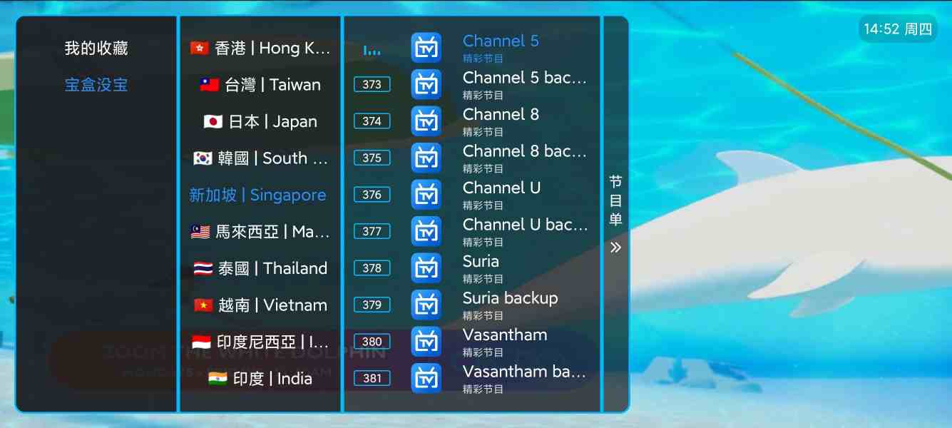 内置5000+电视频道,覆盖主打港澳台,新马泰,美日韩英印等国际海外频道。