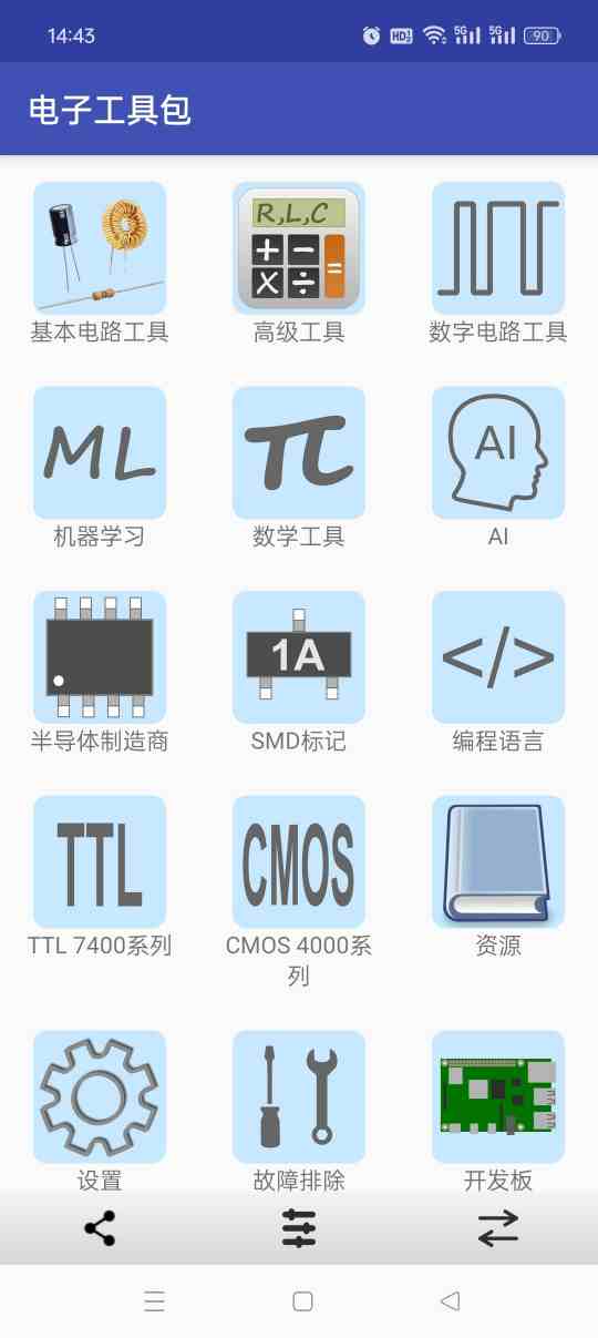 电子工具箱为你提供了一个基础的电子计算器。这个应用非常适合这些。喜欢探索电子产品的人。这非常适合电子专业的学生。还有工程师。该应用提供全面的电子功能。还有工具。你还等什么?现在就体验这份便利吧!
