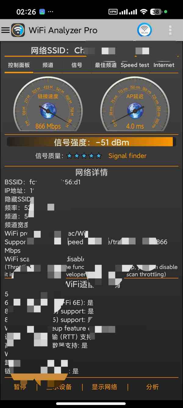 应用名称:WiFiAnalyzer 应用版本:7.2 应用大小:2.38 MB 应用平台:Android 测试机型:小米15