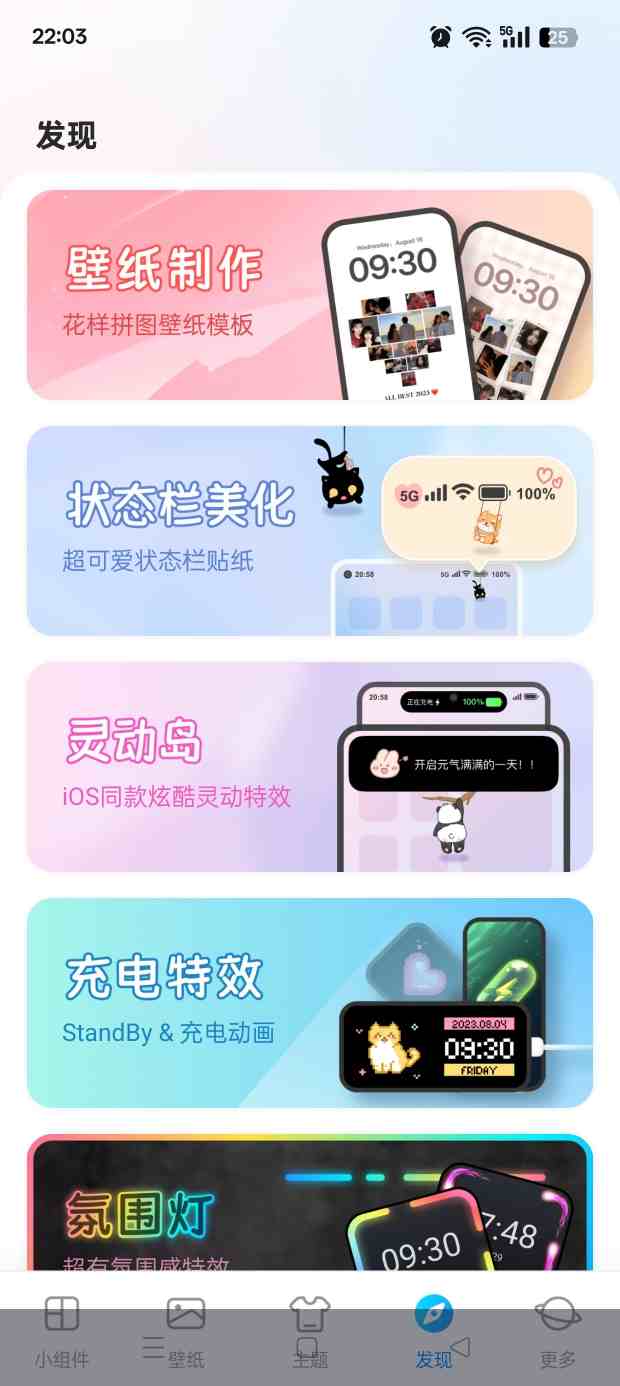 我的桌面iScreen是一款全能桌面美化App,拥有5000+小组件、10万+主题和壁纸等功能包含面板、时钟、工具、创意、倒计时等组件,灵动岛备受年轻人的喜爱,可以自定义挂件、文字、字体、颜色和主题等设置,还有充电动画、壁纸、氛围灯、应用锁等功能,简单又方便,打造属于自己的桌面。