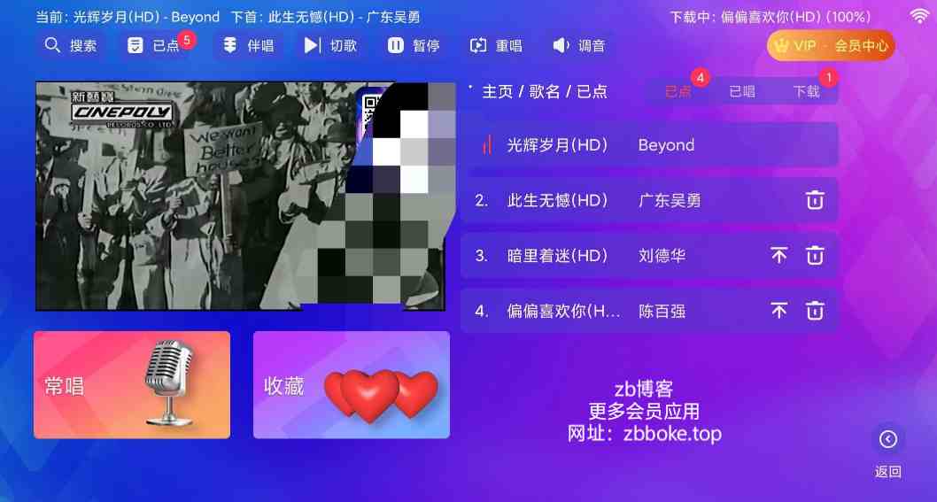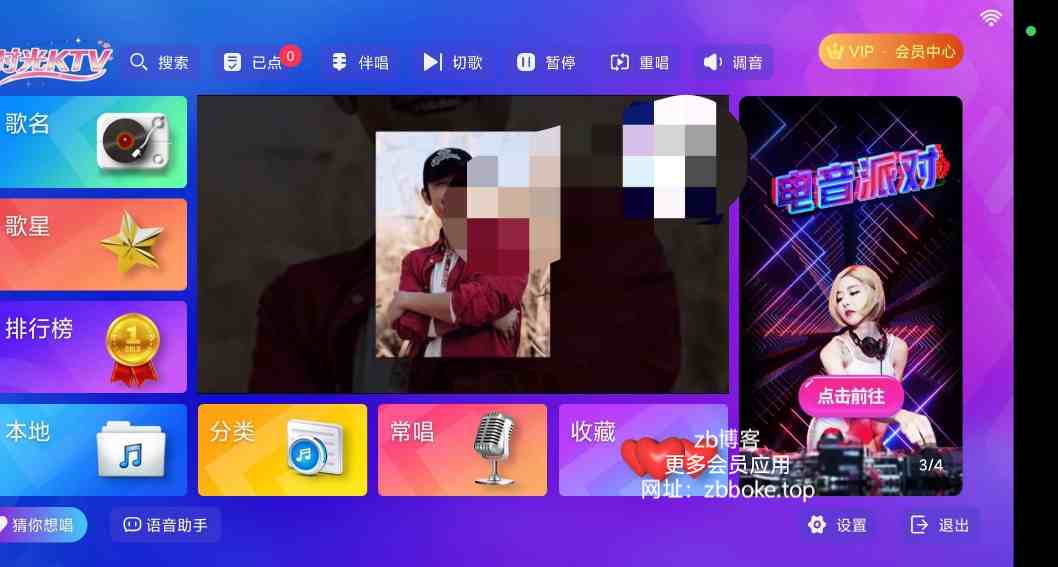 最新修复可用版,所有会员曲库无限制点唱,超清MV,海量曲库,可扫码点歌,解锁VIP会员特权,部分歌曲支持打分。