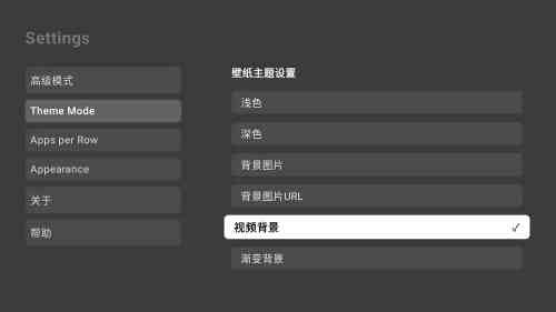 AT4K Launcher 是一款可以将视频设置为壁纸的电视桌面工具,主打简洁、流畅且不占内存。这款小巧的应用仅有2.8MB大小,非常适合希望在电视或安卓设备上拥有动态背景的用户。原版为英文界面,已简单汉化,基本不影响使用。用户可以通过点击右上角的“设置”图标进入软件的设置界面。