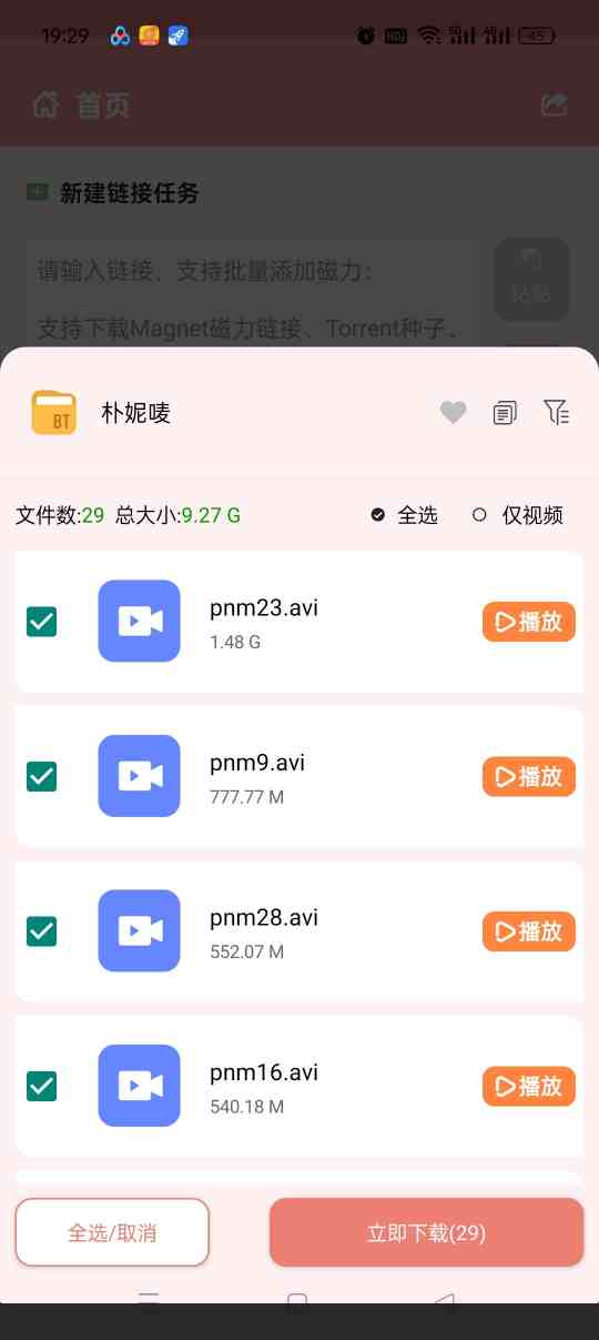 功能强大的资源下载器。只需复制输入磁力链接,软件便会自动扫描下载资源,用户能够提前预览、选择资源内需要下载的文件,下载内容都会进行记录,并且支持一键收藏、回收站找回。