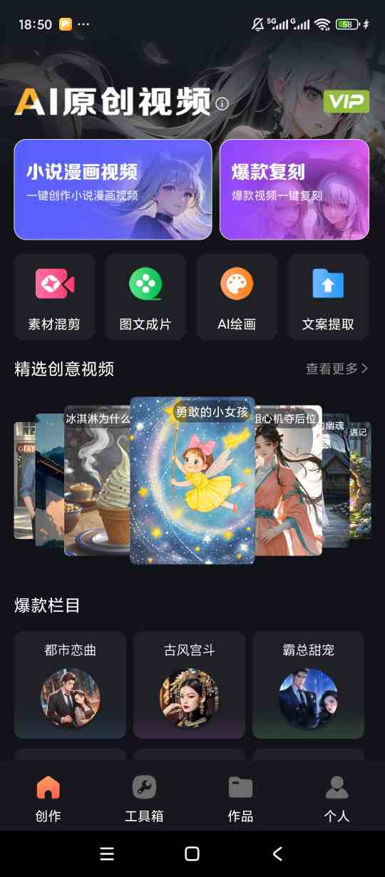 解锁VIP会员特权 AI全能短视频创作神器 无限制生成自定义视频及图片文字 海量创作素材无限制使用