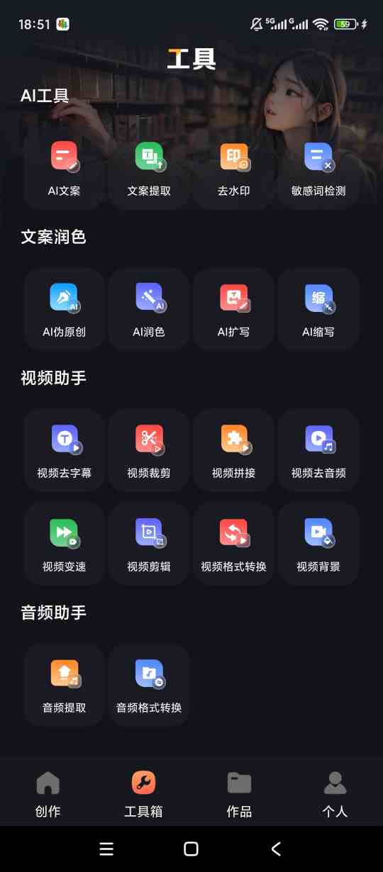 软件能够提供不同的视频案例以及丰富的创作素材,这样用户也可以在创作过程中获取更多的创作思路,让用户也可以一键创作出更多有创意的视频;此外用户也可以使用软件来创作图片、文章和音频等,这样也可以对文章进行润色、对音频进行一站式剪辑!