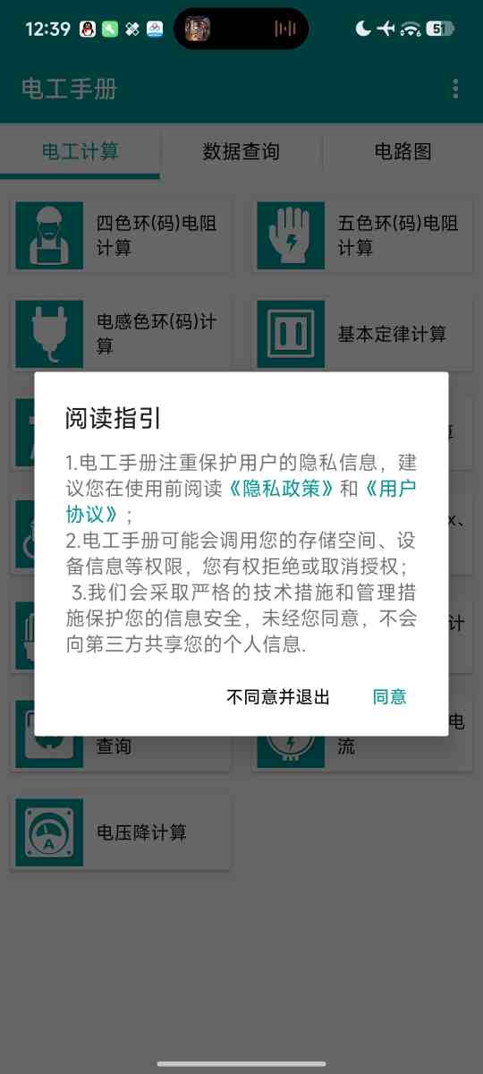 已去除广告 离线查询公式图纸 电工必备工具 提示点广告免费用 只需要把软件的数据清除就可以继续使用了
